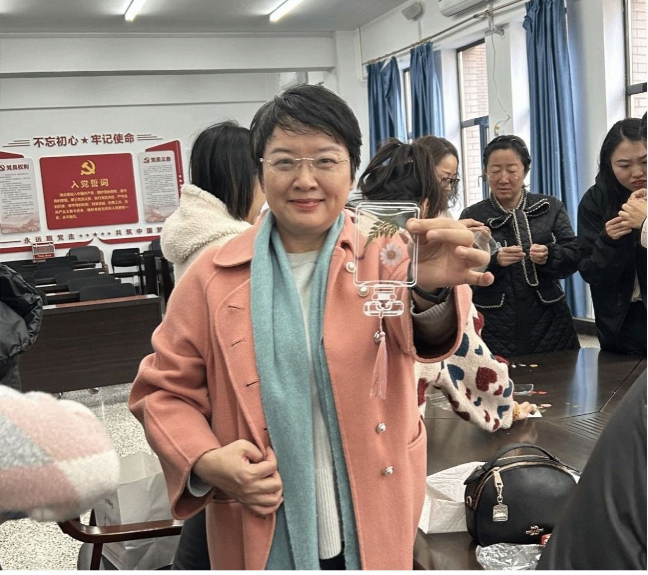 在备受期待的手工创作环节,女同胞们精心挑选雏菊、尤加利叶等永生花材,用镊子细心拼贴构图,再以书签封存春日光影。经济系张老师捧着自己设计的书签笑言:“把春天夹进书本里,每次备课都能感受到学院的用心。”这份兼具艺术性与实用性的作品,既展现了女教职工的巧思与审美,也成为节日独特的文化印记。活动尾声,学院工会为每位女教职工送上学院定制的活动纪念品。