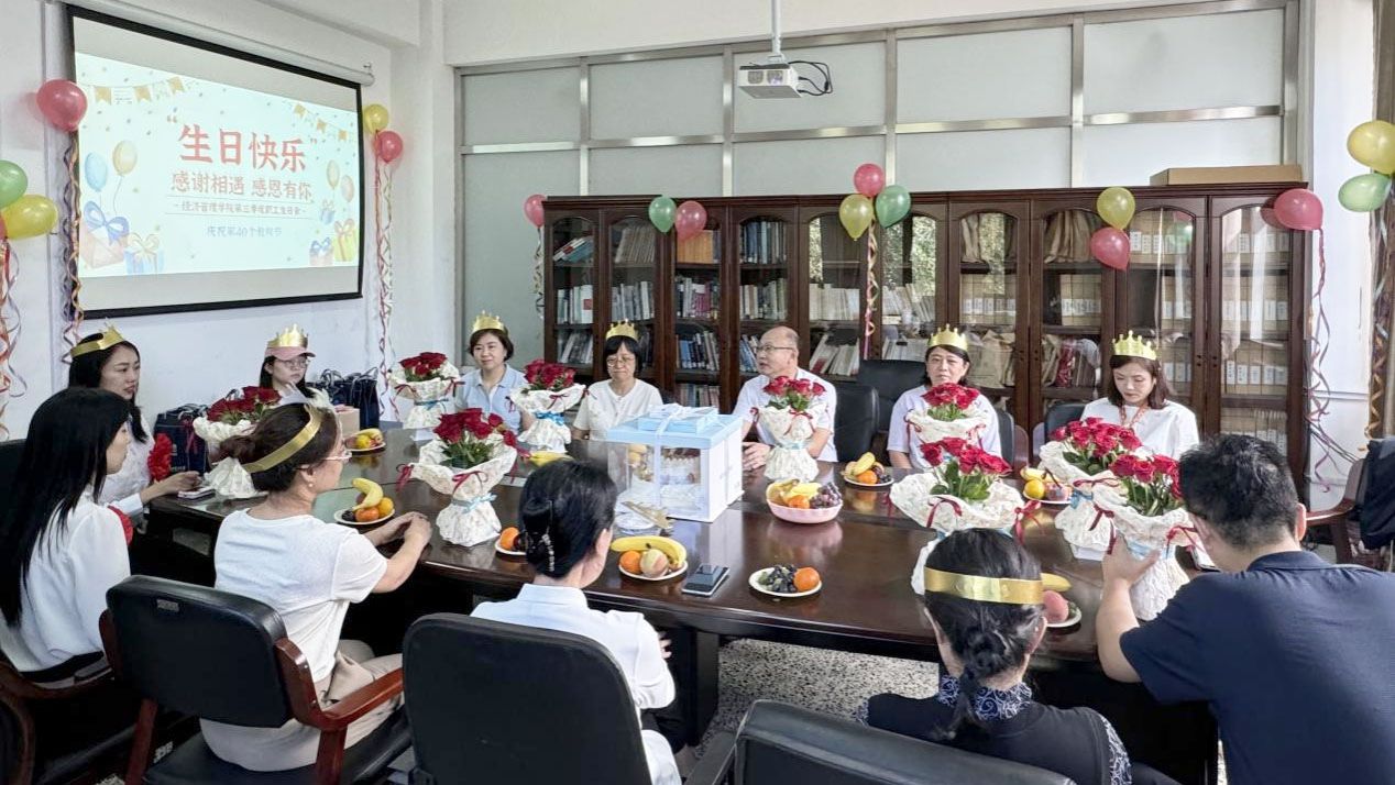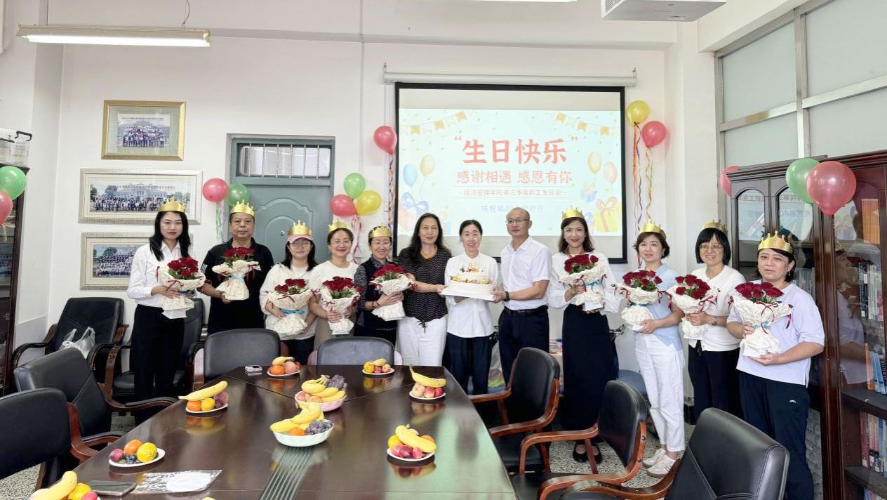 分工会精心策划,于三教D座305会议室为本年度在7-9月过生日的教职工举办集体生日会。生日会由分工会主席郭一戈主持。